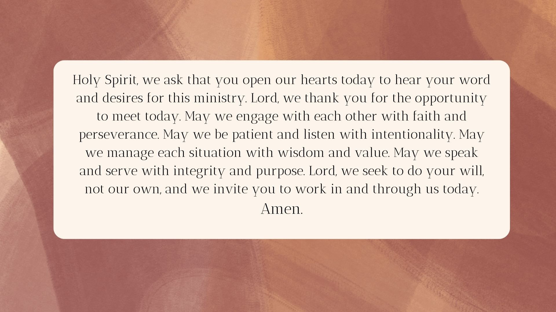 La oración diaria nos ayuda a enraizar este proceso en la confianza. Nos recuerda que esta no es solo nuestra obra, sino la obra del Señor en nosotros y a través de nosotros. Al reunirnos para reflexionar sobre las fortalezas y desafíos de nuestras parroquias, permanezcamos fieles tanto a los momentos de oración personal como a la oración compartida cuando nos reunimos.